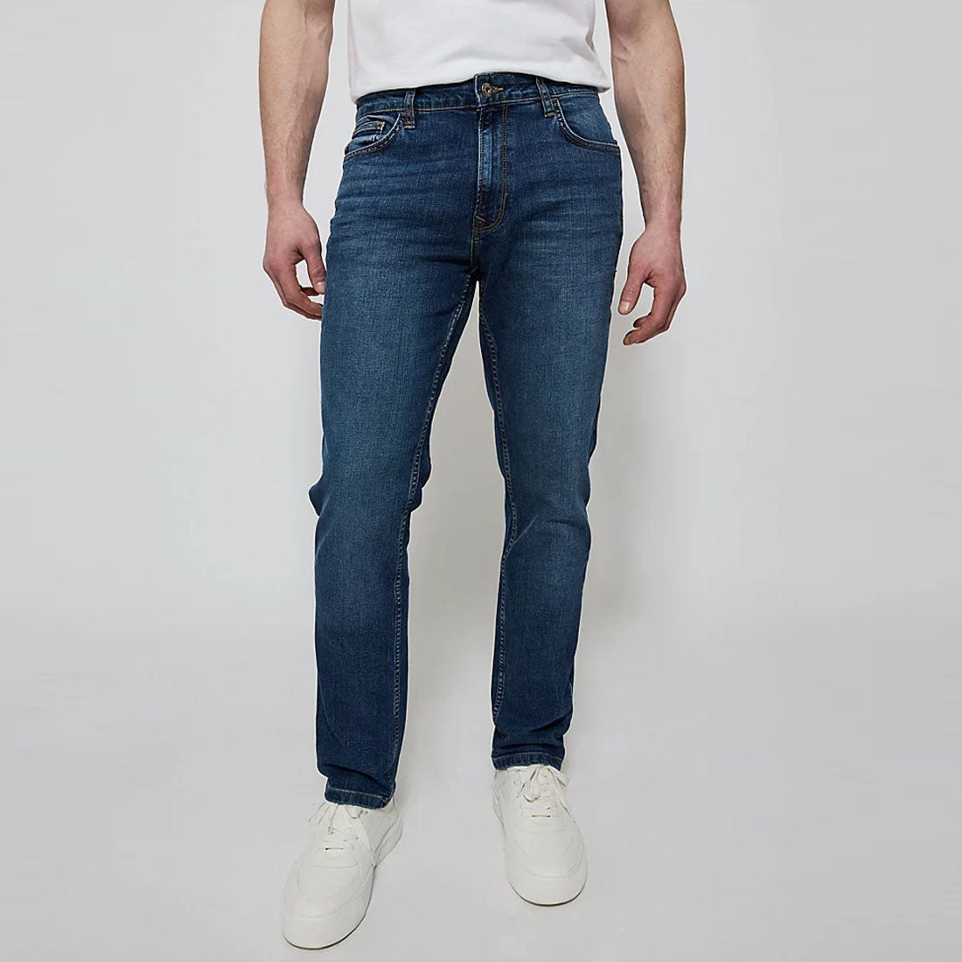 Denim & co slim fit stretchable dark blue jeans for men